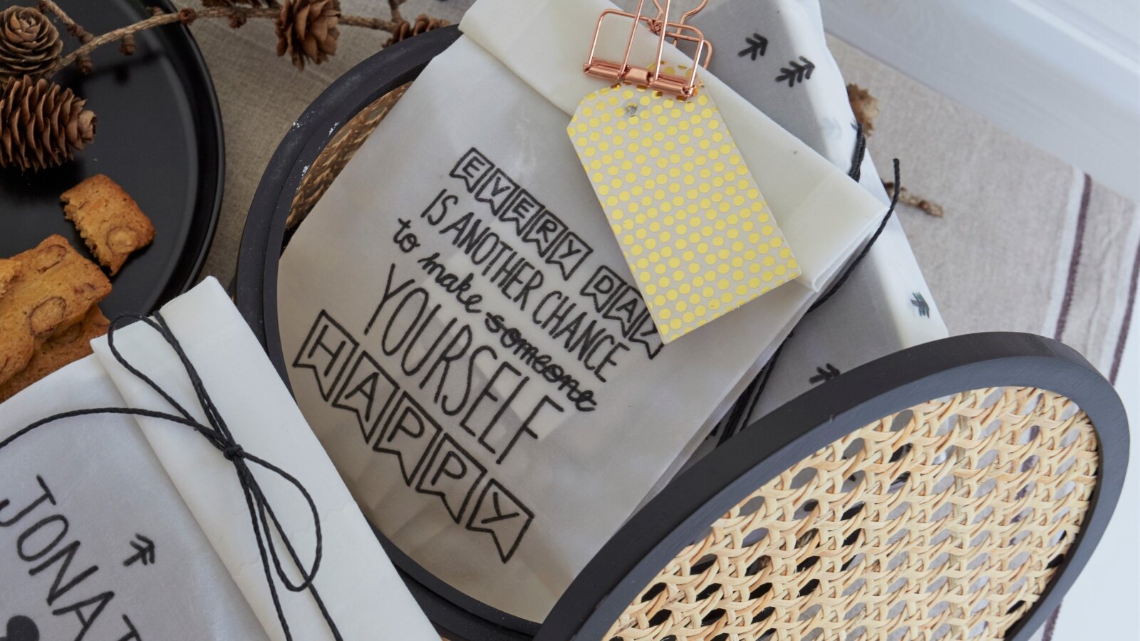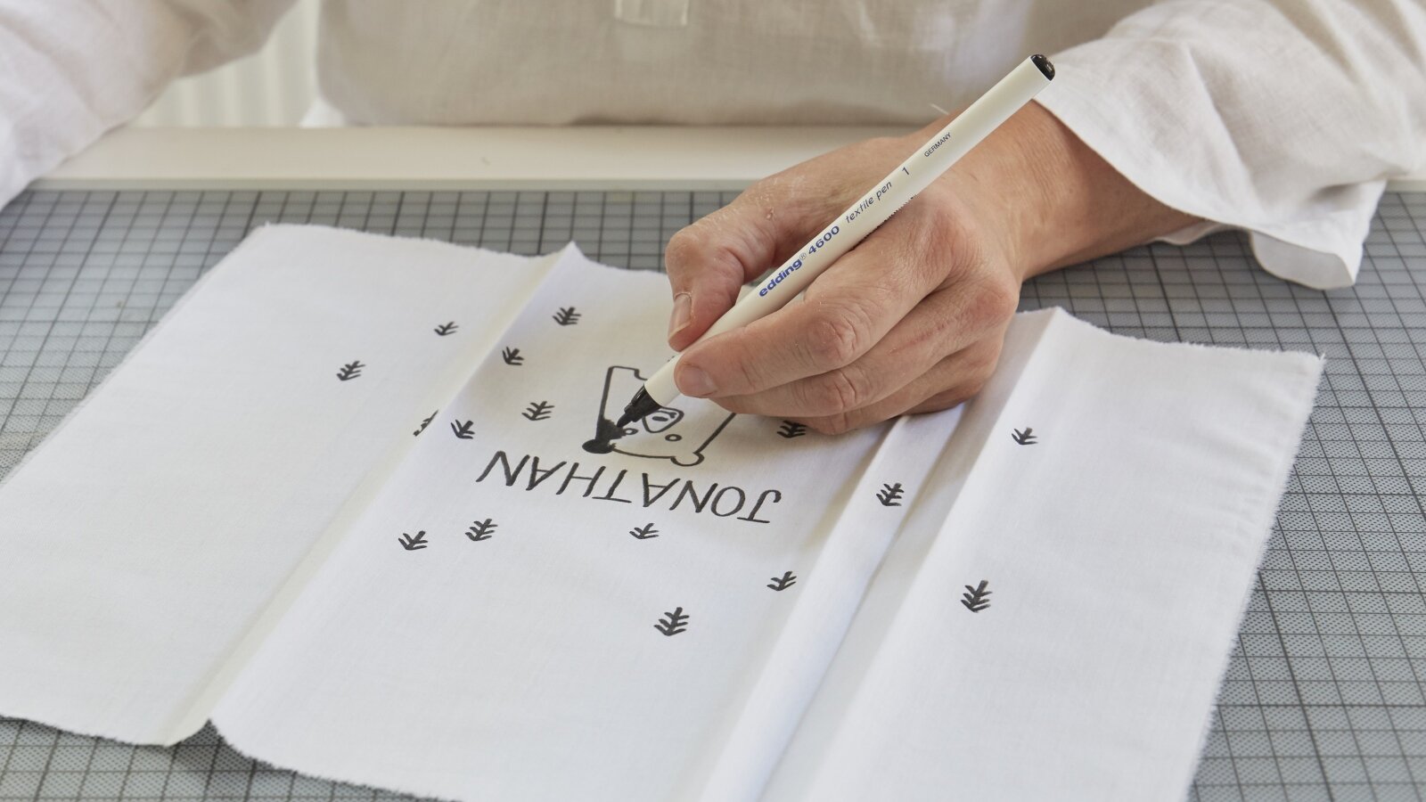 When it comes to giving gifts, it's not only the content that counts. Loving packaging makes presents real eye-catchers and shows creativity and ingenuity. The idea shown here is not only beautiful and imaginative, but also sustainable. You can make wonderfully cute gift bags from waxed fabric that can be used again and again. Before waxing, paint the fabric individually with edding textile pens. The textile markers and pens are perfect for light-coloured cotton fabrics. There is a choice of 20 shades in two line widths including neon colours for particularly bright motifs.