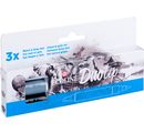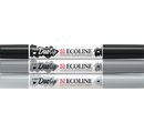Talens Ecoline Duotip "Black-Gray set" with the colors 738 Light Cold Gray, 717 Cold Gray and 700 Black. These 3 colors should not be missing in your collection of Duotip markers. Brilliant colors based on dyes and gum arabic will convince you. The markers contain concentrated, transparent watercolor paint and are equipped with 2 different tips. Use the narrow ball tip to draw fine details and the wider wedge tip to color broad lines and larger areas.