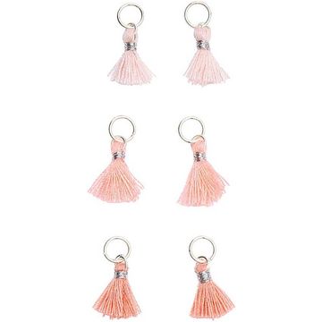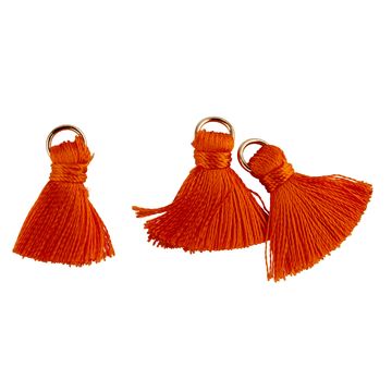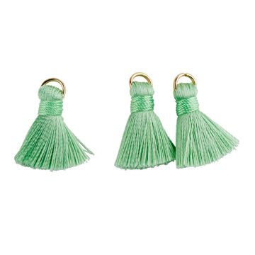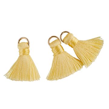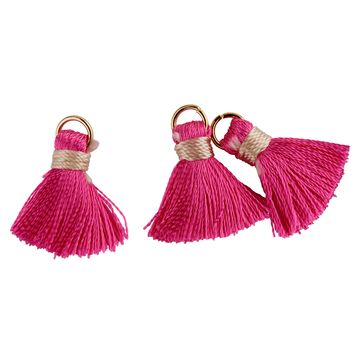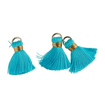 With the Tassels with eyelet, you can easily create your own individual jewelry. The 8 small tassels measure 15 mm and are made from silky, shiny polyester threads. Their metal eyelet allows you to attach them to bracelets, chains or earrings to create unique pieces of jewelry.