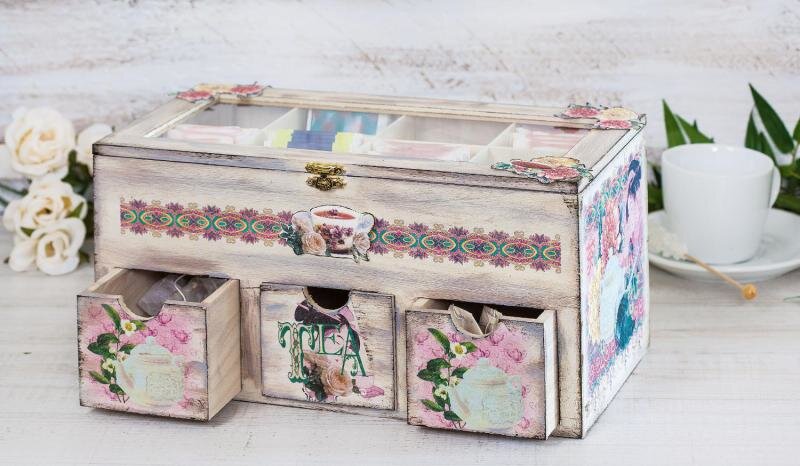 Finally, glue the photo cardboard motifs onto the wooden box.