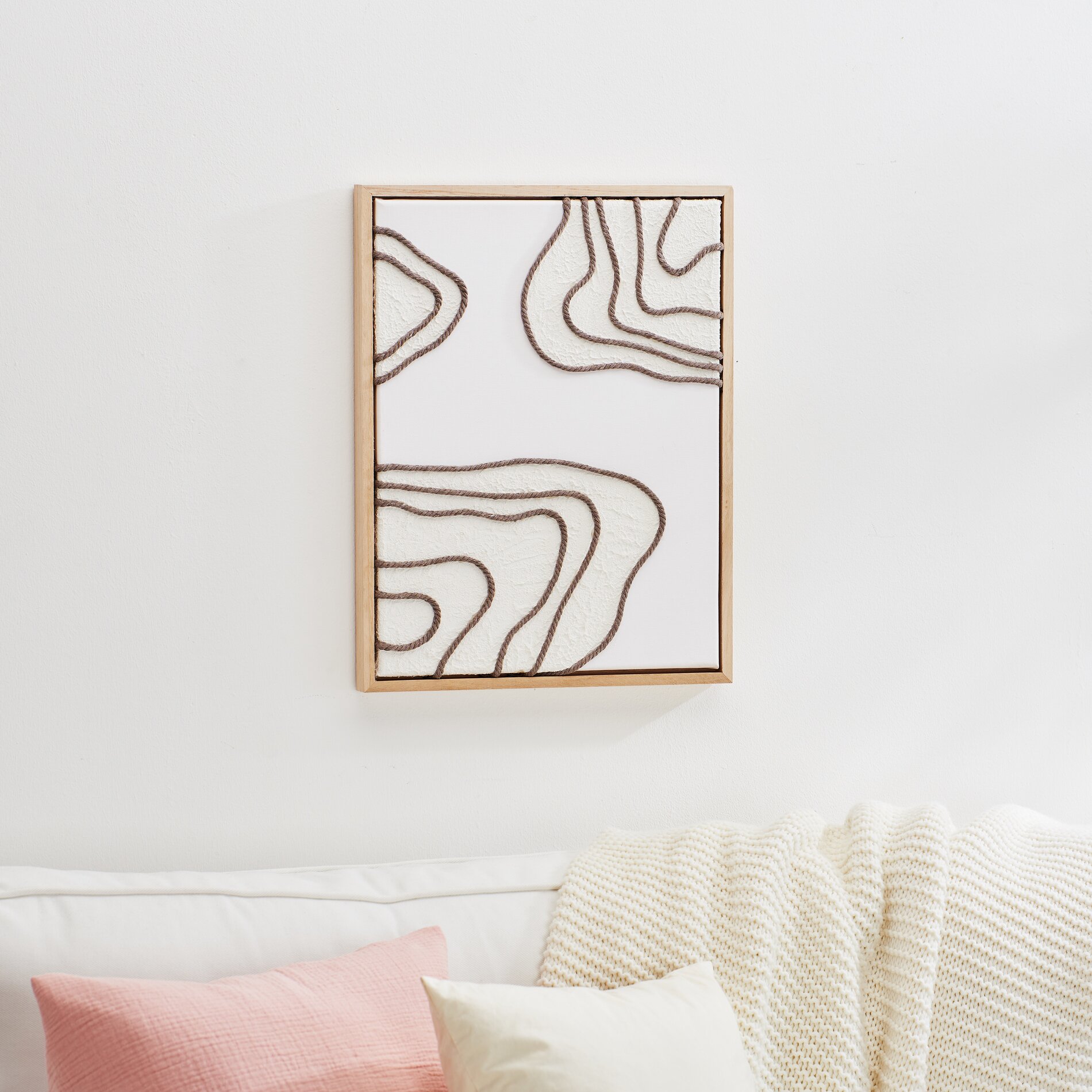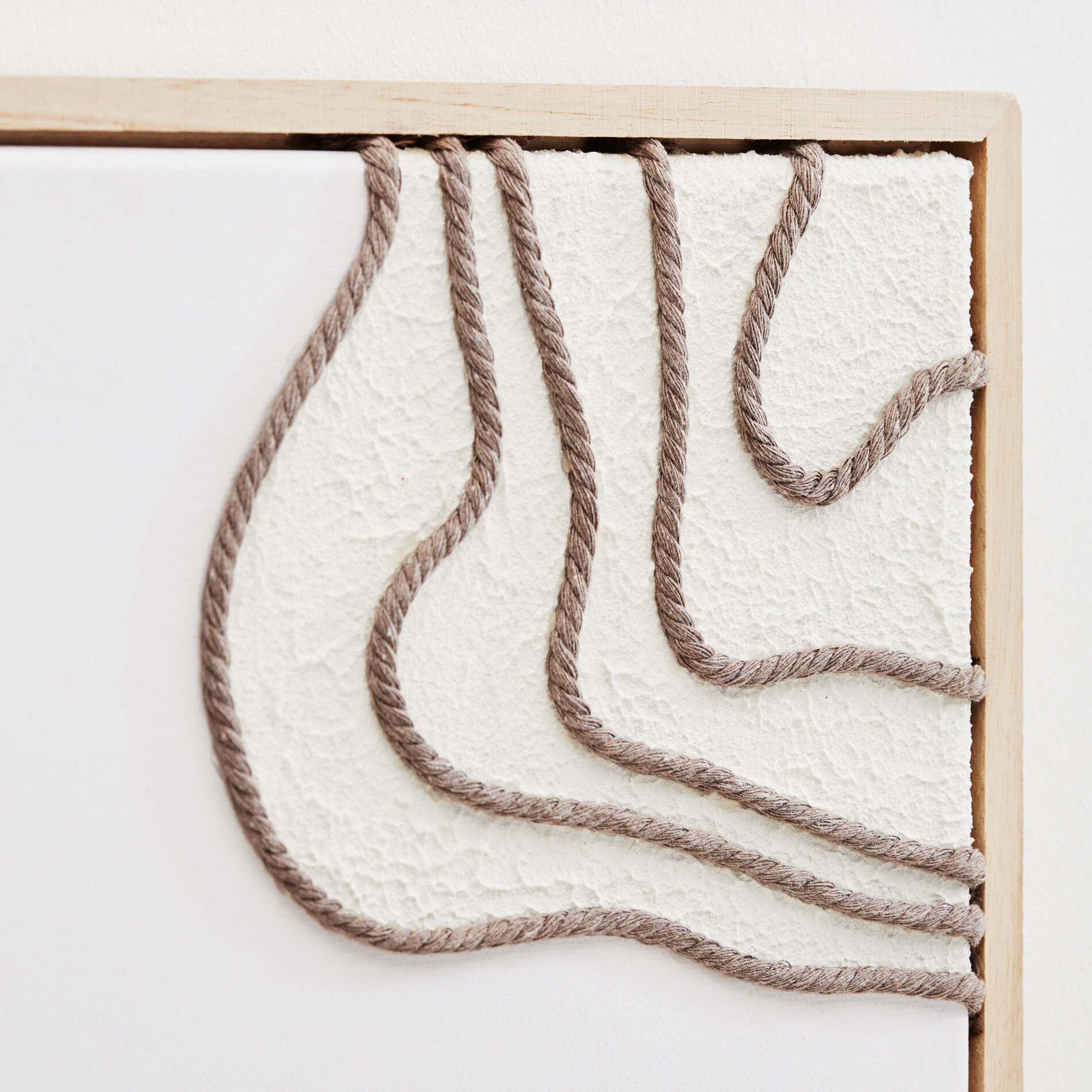 Textured image with macramé cord on stretched canvas