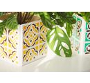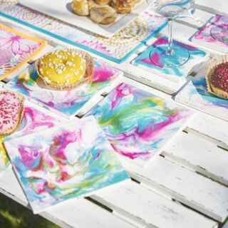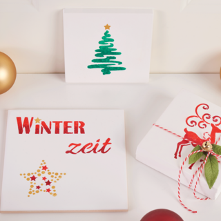 With the tile design there are many different possibilities in the design. Whether with the Napkin techniqueStencil technique, sticking with Straw silk paper or Décopatch papers. Allowed is what one likes. But decorating with porcelain paints and pens, for example in handlettering style, is of course also possible and looks really great. If the decorative tiles are to be particularly hard-wearing, they can be baked in the oven according to the manufacturer's instructions.