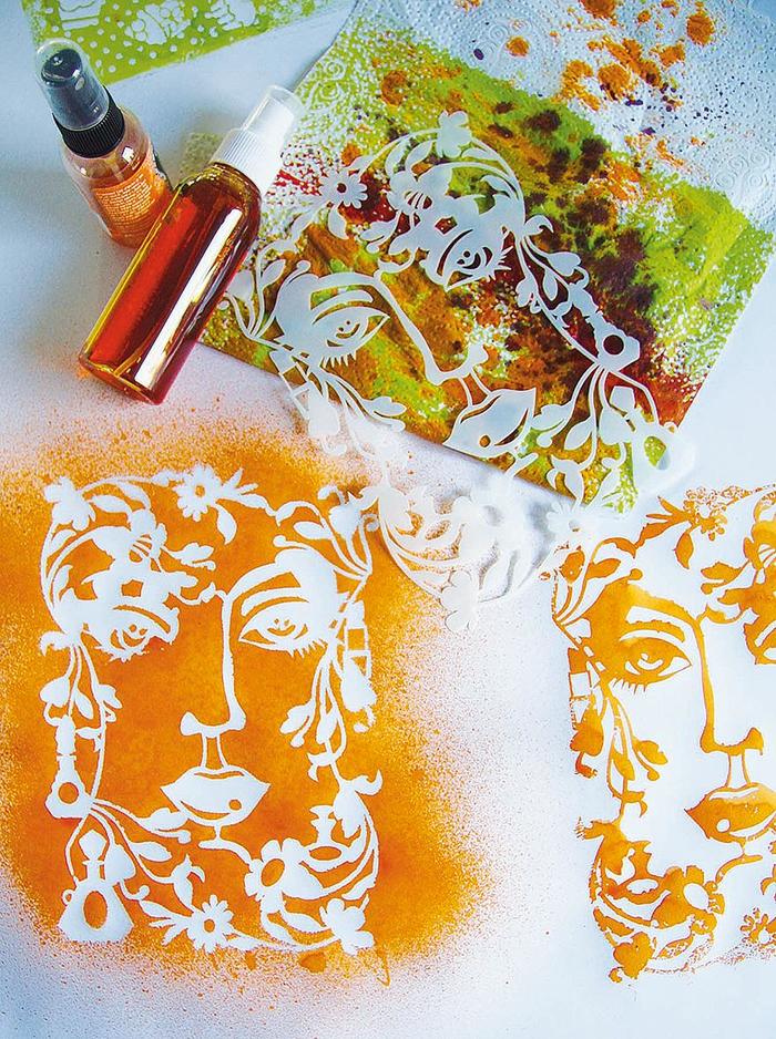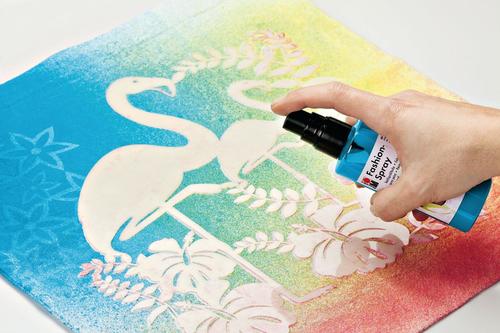 Great effects can be achieved with a spray bottle and diluted stenciling ink A fashion spray and stencils can be used to creatively design textiles.