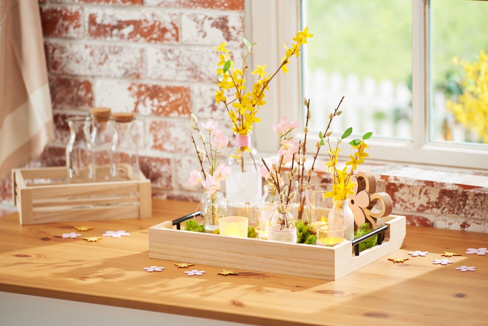 Create an inviting table decoration with various tea lights, flowers and a painted wooden flower in just a few simple steps. Let your creativity blossom and create unique accents for your home!