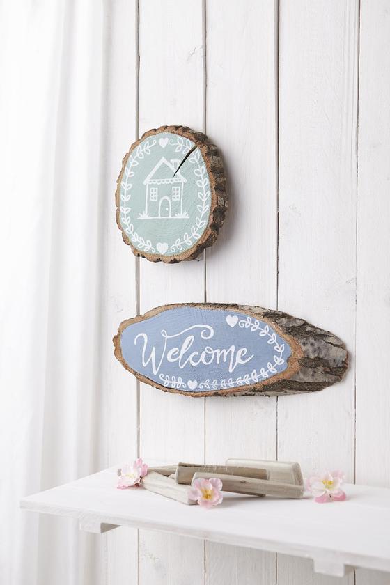To give it a personal touch, you can decorate Wooden discs with pretty decorative elements such as borders, arrows or hearts.