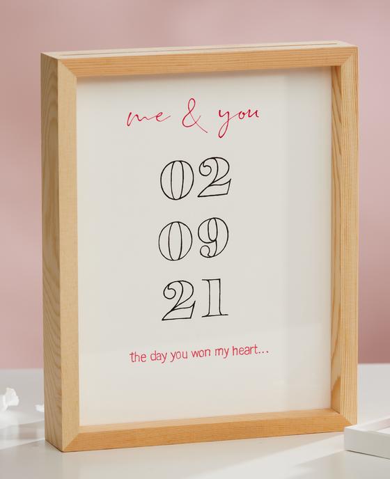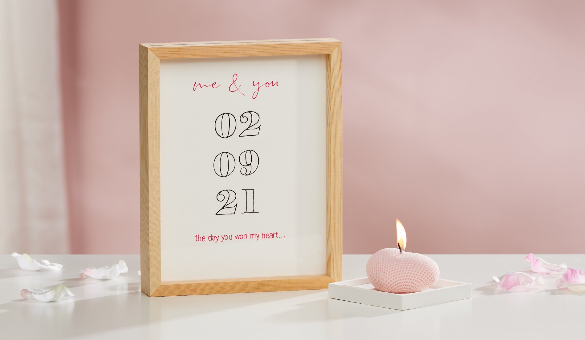 Cut the A4 paper to the size of the acrylic disc. Download the motif template, compose your personal date as well as the messages on another piece of paper to your individual template, place this template under the paper cutting and trace everything. To achieve a better contrast, you can trace contours with a fineliner and place them in the frame.