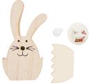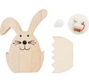 Made from MDF wood, the bunny consists of a total of four parts. The nose can simply be plugged into the opening provided and the face is already pre-drawn. The lower part in the shape of an eggshell can be decorated as desired with paint, lettering, napkins, motif straw floss or paper and then glued on with handicraft glue (not included) - a craft kit that knows no bounds!