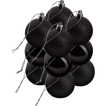 There are 12 Christmas balls in a pack, which are made of plastic and are therefore particularly durable. With their Ø of 3 cm, they are also perfect for smaller decorations.