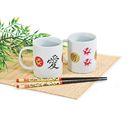The two mugs have a diameter of 8 cm and a capacity of 300 ml, perfect for a large cup of coffee or tea. Thanks to their height of 9.5 cm, they also sit comfortably in the hand.