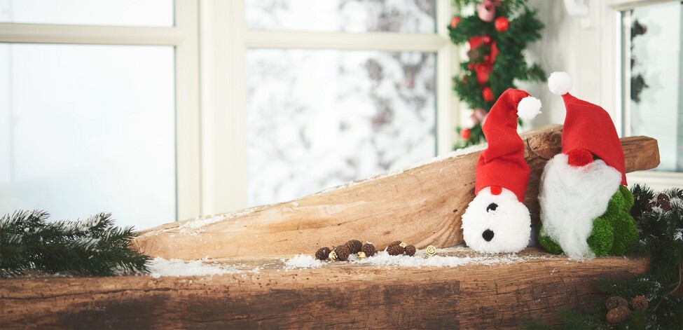 For Torges cap you first make a white and a red pompom in the size mini. Then cut a piece of wire about 20 cm long and attach it to the white mini pompon by sticking it on or sticking it on. Now transfer the design template of Torges cap on the red Felt and cut it out. Put the Felt around the wire like a pointed cap and glue the ends together so that the tip ends exactly in the white mini pompom. You can now carefully put the pointed cap into the uppermost pompom of the fir tree and fix it.
