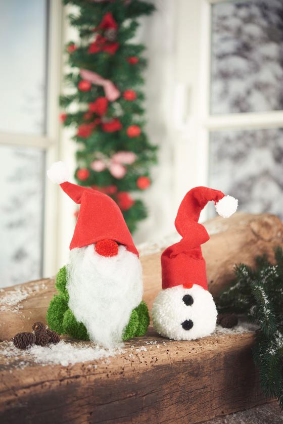To do handicrafts you first need the Pompon maker set. This set contains four arches in four different sizes: Large Ø 9 cm, medium Ø 5.5 cm, small Ø 4.5 cm and mini Ø 3 cm. For the nasal gnomes the pompon stencils Medium to Mini were used.