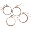 The VBS Decoration pendants "Tree balls" are made of MDF wood and partially veneered. You will receive 4 tree balls with outer Ø of approx. 10.8 cm, inner Ø approx. 9.9 cm and a height of approx. 12 cm. At the top of the tree ball is a jute ribbon for hanging.