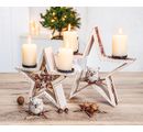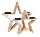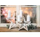 2 festive wooden stars as Kandelaar. A beautiful, Christmas decoration e.g. in front of the fireplace, the Christmas tree, the sideboard etc. In order to make it easier for you to paint or stick decoration papers on the holders can be unscrewed. You can also decorate the interior of the stars with small decorative pendants or wintery materials such as cones.