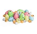 38 decorative eggs in a colourful mixture of colours. The speckled decorative eggs consist of Polystyrene. The eggs have a size of about 2-5 cm. The colourful egg mix consists of the colours Pink, Green, white, Yellow, Blue and Orange.
