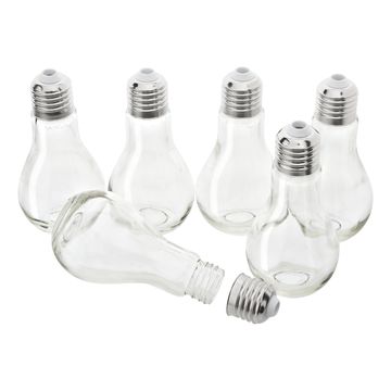Decorative bulbs made of clear glass as XXL package. With unscrewable metal thread, at the tip of which is a hole (Ø approx. 2 mm). Thus, the decorative light bulbs are also suitable for hanging. Ideal for filling with small accessories or also as salt & pepper shakers. Wonderful as decoration in branches, as a holder for place cards or as an eye-catcher in the table decoration.