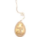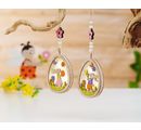 A magical Easter VBS Egg pendant with LED "Bunny" and a battery compartment for 2 CR2032 batteries. The trailer is made of MDF wood and partially veneered plywood. The pendant is underlaid with a glitter foil. At the top of the egg is attached eyelet with jute ribbon, wooden beads and flower. With ribbon, the height is approx. 32.5 cm.