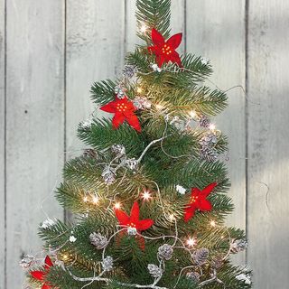 The fir tree has a height of approx. 65 cm. You can decorate the Christmas tree, for example, with your own Christmas tree baubles and make it glow with a chain of lights. A great Christmas tree for the Christmas season.