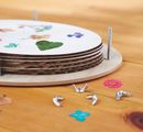 The Flowerpress has an oval shape and consists of 2 wooden plates, 7 solid cardboard plates, 12 white thin cardboards and 4 screws. The top wooden plate can be beautifully decorated with Wooden burning, Décopatch papers, Napkin technique or with the first self-pressed flowers or leaves