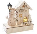 The wooden kit consists of 20 parts, from which the Wooden building kit with a box for the battery compartment, a house with XMAS lettering, a snowman motif, a Christmas tree, a fence element (plywood material) and a glowing lantern (plastic material) are created. This allows you to create an atmospheric scene that will attract everyone's attention. The LED lanterns provide a warm, inviting light and the plywood design gives you the opportunity to let your creativity run wild. Whether painted, sprayed or covered with paper - design the house of lights to suit your taste.