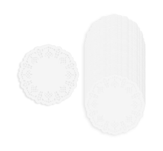 VBS Lace doilies in white are made of paper and practical for table and table. They are designed with a rose border.