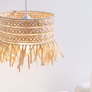 The cylindrical form is suitable as a standing or hanging lamp. Cylindrical form, ring diameter: 20 cm.