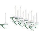 You will receive a total of 10 LED candles with atmospheric flickering light and a clip to attach them. The candles are battery operated. The candles have a diameter of about 1 cm. The base has a diameter of about 3.4 cm and a height of about 10 cm.