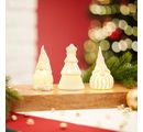 VBS LED fir tree made of matt white porcelain with a warm light. The small tree measures approx. 7.7 x 12.6 cm. It comes with 3 LR44 batteries. The porcelain is unglazed and unpainted.