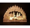 This wonderful VBS Wooden light arch "Deer at forest" has a size of approx. 40 x 8.5 x 28 cm and is equipped with LED lighting with 12 small lights. At the bottom is a battery compartment for 2 AAA batteries (not included). The material is high quality plywood. The arch of lights is decorated on one side.