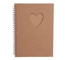 A VBSnotebook passepartout with heart in A5 format, 120 pages with a grammage of 95 g/m². Bound with metal rings. The heart has a size of approx. width 5.8 cm and height 6 cm. The pages of the notebook are blank.