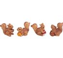 Bring the magic of the forest into your home with our VBS Miniature squirrels "Scratch", set of 4. These detailed miniatures, made of polyresin, will enchant you with their lively depiction: two are sitting cosily with a yellow berry or an acorn, while the other two are standing and presenting a toadstool or a nut . The sitting squirrels measure 3 cm in length and height, while the standing ones are 3.5 cm long and 2.5 cm high.