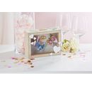 A high-quality moneyVBS box with a viewing window made of glass. The length is about 20 cm, width about 7 cm and height about 15 cm. The material is MDF wood. The back of the money box can be opened. The glass cutout has a size of approx. 16.8 cm x 11.8 cm