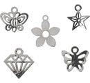 Chic VBS Pendant and connector "Beautiful" with a size of approx. 0,7 x 0.8 - 0.9 x 0.9 cm. You will receive 1 connector in the shape of a butterfly and 4 pendants in the shape of diamond, flower, star and butterfly.