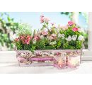 3-part planting bowl ideal for your windowsill or garden. 3-teilige Pflanzschale ideal für Ihre Fensterbank oder den Garten. Mit Accessoires oder Bändern gestalten Sie das Pflanzgefäß und machen es zu Ihrem Eigenen, durch Ihre Ideen und verschiedenen Kreationen. Alles kann in die drei Schalen gepflanzt werden, sogar CupCake-Lollis, siehe Dekobeispiel. With accessories or Bedit you can design the planter and make it your own with your ideas and various creations. Everything can be planted in the three bowls, even CupCake lollipops, see decoration example