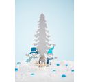 The cute VBS wood building kit "snowmen with fir" consists of 4 plug-in motifs and 1 plug-in rail with a total size of approx. 15 x 5 x 30 cm. The building kit are made of veneered plywood.