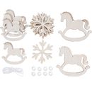 The VBS Scatter decoration set "Rocking horses" consists of various wooden scatter decoration, which can be designed with the ribbon and the beads to creative pendants. The scatter parts have a hole for hanging with a Ø of approx. 2 - 3 mm.