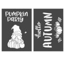 Give your home an autumnal touch with our VBS Stencil set "Autumn & Pumpkin". With two A4 stencils featuring charming motifs such as a gnome with pumpkins and the words "Pumpkin Party" and three pumpkins with leaves and "Hello Autumn", you can add creative accents.