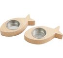 This VBS Tealight holder "Fish" have a size of approx 11 x 5.5 cm and a thickness of approx. 2 cm. The material is raw wood with a metal tealight insert. Included are 2 pieces for a maritime decoration.
