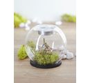 Tealight holders "Glass ball" with a diameter of about 10 cm and a height of about 8 cm. Open glass ball with a round base plate made of wood.