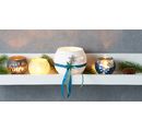 The glass is also wonderfully suited as a hanging basket in conjunction with Macramé. With different knots and hung at different heights, an eye-catcher for the living room or the terrace. With fairy lights, small succulents or LED tea lights you get a shiny atmosphere.