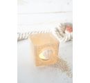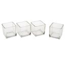 4 beautiful tea light glasses made of clear glass in cube form. The glasses have slightly upward flared walls.