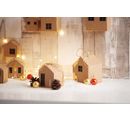 Through a small opening in the floor, the houses can be equipped with a micro LED light chain. Cut windows into it and punch out small stars in the roof. This gives the houses an additional shine