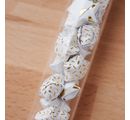 So inconspicuous and yet so versatile! These test tubes, which are originally used in chemistry, you can use great for small gifts or decorating . The cork closes the jars and nothing falls out. Perfect for cute gift ideas or small gifts, gift certificates, as place cards on the set table or as a guest gift for a wedding or baptism. Also as decoration in table arrangements , the glass tubes become a beautiful eye-catcher. With small accessories such as scatter pieces, ribbons, tags and labels, the test tubes become an eye-catcher.