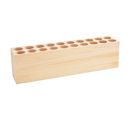 The tool block has a length of approx. 30 cm and is 6 cm wide. It offers space for 20 tools. The holes have a diameter of about 2.4 cm and a hole depth of about 6 cm.