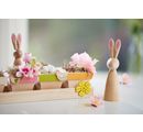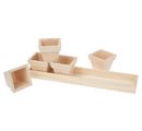 A wonderful VBStray with 5 wooden pots. The tray including pots has a size of approx. 35 cm length x 7.5 cm width x 6.2 cm height. The from tray inside has a surface area of approx. 33.2 cm x 5.8 cm, with a height of approx. 1.7 cm. The 5 pots are approx. 6.5 cm x 6.5 cm and run conically downwards so that the footprint is approx. 4 cm x 4 cm. The inner dimensions at the top are approx. 5 cm x 5 cm.