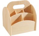 A practical and versatile helper. Stable and beautifully finished. With rounded edges and carrying handle. Thanks to the turntable on the bottom, all utensils are easy to reach.The sturdy wood offers you a variety of ways to design your organizer.