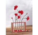 A vase with a frame of raw wood and test tubes of glass. You can design the frame very easily with techniques such as the Décopatch or Napkins-technique or work with colours. The test tubes are an unusual vase element and the arrangement allows for completely new flower arrangements.