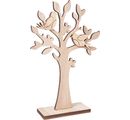 A VBS wooden stick motif "Tree and birds" consisting of 2 parts. The material is veneered plywood and the size is approx. 13.5 x 4 x 20.5 cm. For a safe stand, the plug-in motif should be fixed with craft glue.