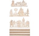 The detailed motifs made of veneered plywood and MDF wood include lovingly designed houses, a church, fir trees, a street lamp and a cheerful snowman. Measuring 19.8 x 7 x 10.5 cm , this ensemble is a real eye-catcher in your home.