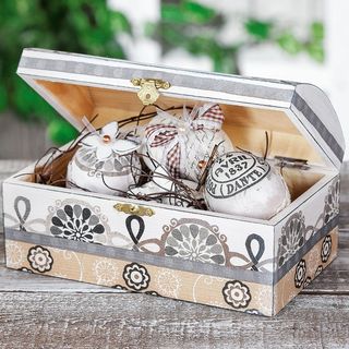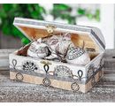 The beautiful chest can be worked well with acrylic paint, napkin or decoupage technique and can be additionally decorated as desired. The wooden chest is a beautiful eye-catcher in every room and a decorative storage idea for jewellery or other small items.