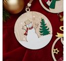 The VBS Wooden decoration pendants "Snowman" are a set of 2 with a Ø of about 10.5 cm and cute for winter decoration. Each ball consists of two parts that are simply glued together. Still decorated with the plastic branch and ribbon with wooden bead and the winter decorative pendants are ready.